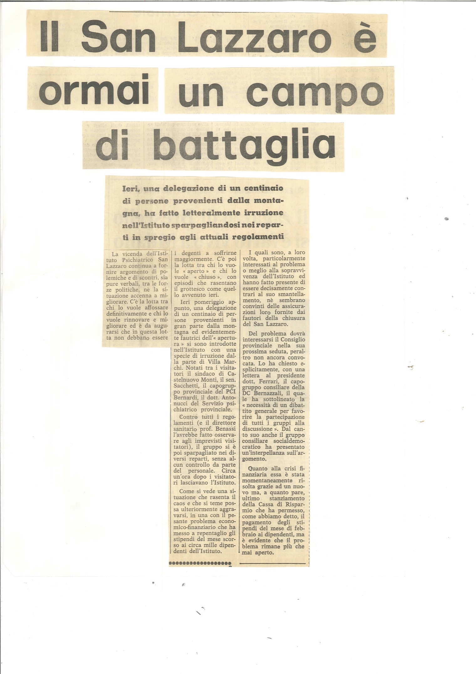 Archivio stampa Cividale del Friuli – 1968 Avanti 1 aprile 1975 Visitare il manicomio 1971 La lezione del caso Huber Agosto 1976 Storia dei manicomi 26 Giugno 1975 Villa dei fiori – 1979 Dentro e fuori dai manicomi – 1981 Il Tirreno 21 Marzo 1984 Stop 1985 La stampa 1983 Articoli sull’Autogestito – 1987 Stop 22 aprile 1988 Foto di Giorgio Antonucci con Valerio Retro della fotografia È scomparso Giorgio Antonucci, decano della psicoterapia in Italia. Scomparso Giorgio Antonucci, un combattente contro il pregiudizio psichiatrico La Nazione 30 novembre 2013